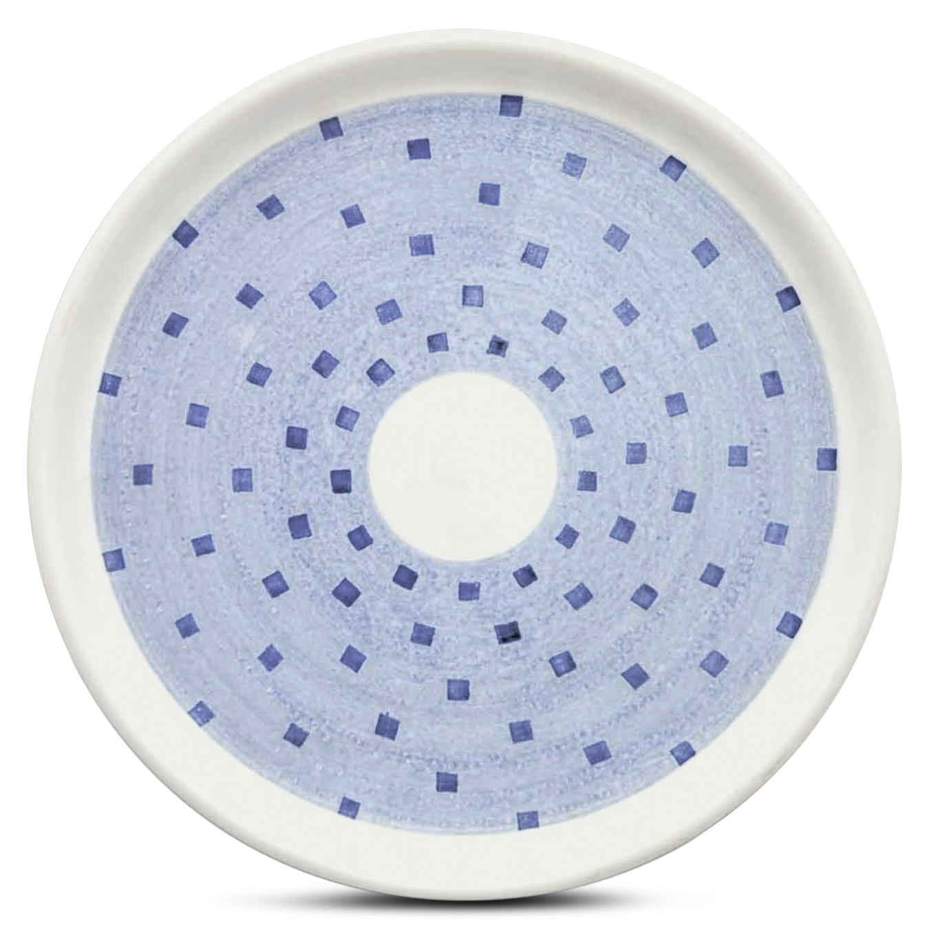 Fayence hälftig weiß blau mit Karos Glasur glänzend