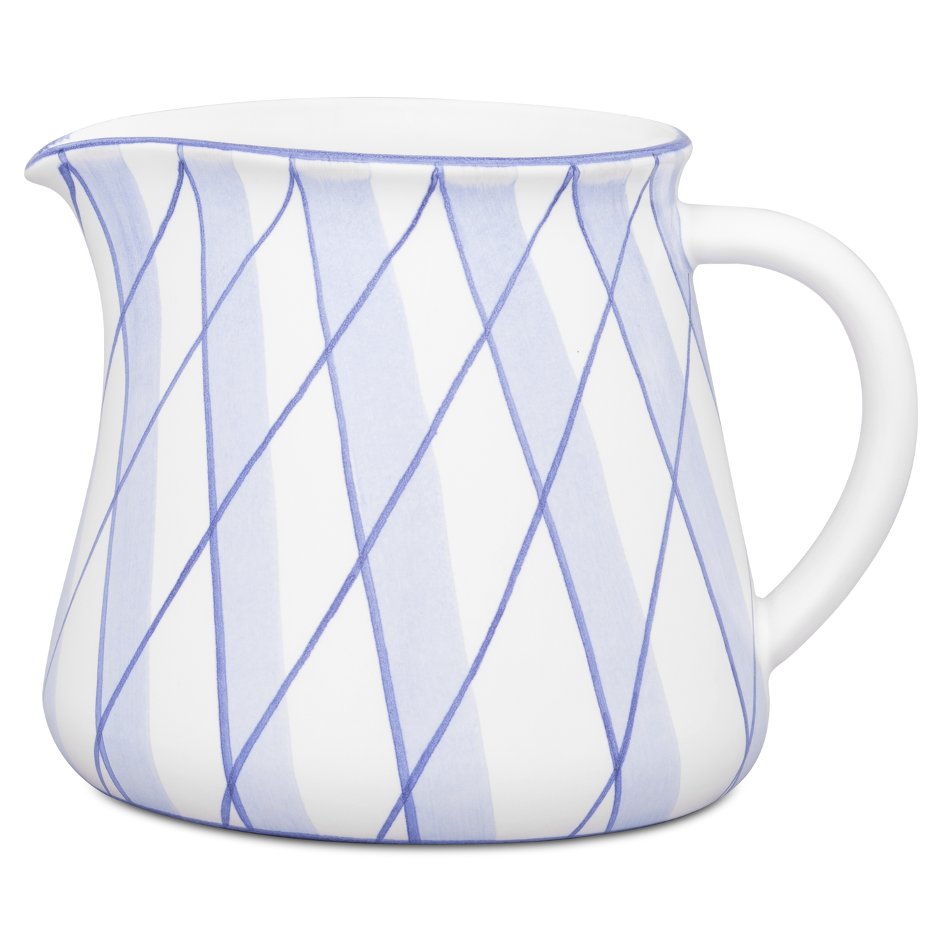 Fayence weiß blau mit dunkelblauem Streifennetz Glasur glänzend