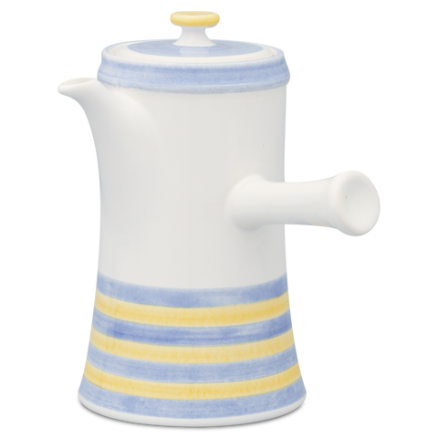 Die Mokkakanne von Hedwig Bollhagen mit der Formnummer „561“ besticht durch ihre einfache, klare und schnörkellose Form. Charakteristisch ist der vertikale Stabhenkel. Die Gesamthöhe inklusive Deckel beträgt 17 Zentimeter. Mit einem Fassungsvermögen von 0,55 Liter ist die Mokkakanne aus Keramik nicht zu klein und nicht zu groß. Das zweiteilige Set aus Kanne und Deckel sorgt mit seiner geradlinigen, zylindrischen Form für vielfältige Einsatzmöglichkeiten. Damit folgt Hedwigs Bollhagens Mokkakanne der Bauhausmaxime der Synthese von Kunst und Handwerk. Schön ist, was funktioniert. Eins ist sicher, ob Mokka, Muckefuck oder Tee, in der Mokkakanne von Hedwig Bollhagen lassen sich Heißgetränke aller Art stilvoll und formvollendet servieren.