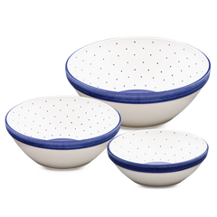 Fayence weiß mit blauen Punkten und Abschluß Glasur glänzend