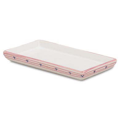 Die rechteckige Schale von Hedwig Bollhagen mit der Formnummer „538“ präsentiert sich als vielseitig einsetzbarer Klassiker, der sich zudem wunderbar mit anderen Schalen und Servierplatten kombinieren lässt. Die charakterstarke Konturenzeichnung der 15 Zentimeter langen sowie 8 Zentimeter breiten Schale verleiht der Keramik eine minimalistische wie gleichsam charismatische Wirkung. Mit einer Höhe von 2 Zentimetern lässt sich das handgemachte, auch als „Kabarett-Schale" bezeichnete Manufakturerzeugnis variabel nutzen und kommt als geschmackvolle Anreiche von Brot, Vorspeisen und Co. oder auch als kleines Tablett groß raus. Darüber hinaus überzeugt die solide Keramik mit einem leichten Gewicht von nur 140 Gramm – somit überzeugt das Design-"Leichtgewicht" vor allem auch in praktischer Hinsicht mit Zuverlässigkeit im Gebrauch.