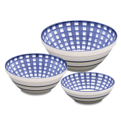 Fayence weiß mit blauem Gitter Glasur glänzend