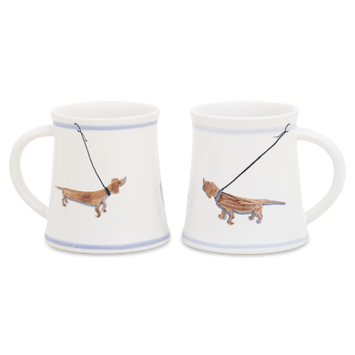 Fayence weiß mit Malerei Dackel Glasur glänzend