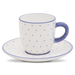 Fayence weiß mit blauen Punkten und Abschluß Glasur glänzend