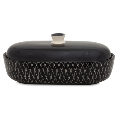 Die Dose mit der Formnummer “481” von Hedwig Bollhagen ist bei den Mitarbeitern der Keramikmanufaktur in Marwitz auch als Brottopf bekannt. Das zeitlos schlichte, zweiteilige Set aus Behälter und Deckel prägte schon das Alltagsdesign in der ehemaligen DDR und wird heute von Designliebhabern neu entdeckt. Charakteristisch sind der rechteckig-ovale, bauchige Korpus der Dose und der nach oben bauchige Deckel mit dem angarnierten, kegelförmigen Griff. Mit einer Höhe von 14,5 Zentimetern, einer Breite von 20 Zentimetern und einem Volumen von zweieinhalb Litern gehört der Brottopf 481 schon zu den großen Keramiken im Sortiment von Hedwig Bollhagen. Ob Kastenbrot, Baguette oder Landkruste, dieser formschöne Brottopf bietet einen nachhaltigen und hygienischen Aufbewahrungsort und darf in keiner Designliebhaber Küche fehlen.