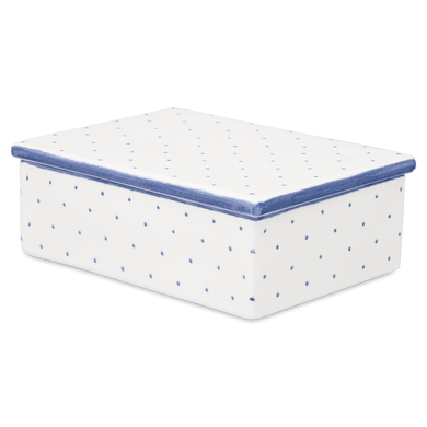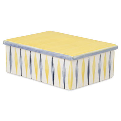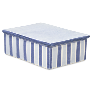Die Dose mit der Formnummer "852" von Hedwig Bollhagen ist ein charmantes Aufbewahrungstalent, das Funktion und Stil perfekt vereint. Mit ihren Maßen von 15 cm Länge, 11 cm Breite und einer Höhe von 5 cm bietet sie 0,4 l Stauraum und ist damit ideal, um Kleinigkeiten wie Gewürze, Tees, Süßigkeiten oder andere Küchenutensilien stilvoll zu verwahren. Der Deckel schützt den Inhalt sicher und sorgt dafür, dass alles frisch bleibt. Das schlichte, rechteckige Design mit den typischen Streifendekoren von Hedwig Bollhagen verleiht der Dose eine zeitlose Eleganz, die auf jeder Anrichte und jedem Tisch eine gute Figur macht.Für eine harmonische Küchenlandschaft kombinieren Sie die Dose mit weiteren Aufbewahrungs- und Vorratsbehältern von Hedwig Bollhagen, wie unseren Brottöpfen, Zwiebeltöpfen sowie Essig- und Ölflaschen, und schaffen ein einheitliches, elegantes Arrangement. Für nahezu alles bieten wir eine passende Dose an – von Gewürzdosen über Kaffeedosen, Keksdosen bis hin zu Marmeladendosen und Butterdosen für ein ästhetisches Frühstück – damit Ihre Küche nicht nur funktional, sondern auch stilvoll organisiert ist. Seit 1934 entstehen solche Keramikschätze in den Werkstätten von Marwitz – handgefertigt und einzigartig!
