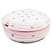 Fayence weiss mit blauen Punkten und rosa Rand Glasur glänzend