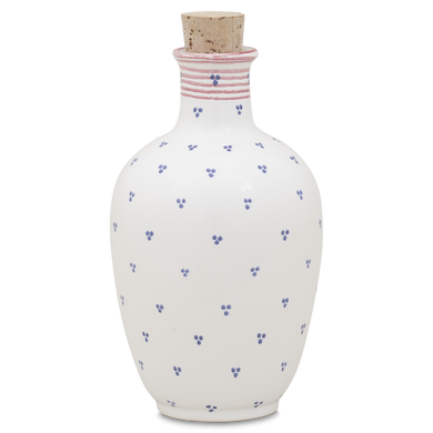 Fayence weiss mit blauen Punkten und rosa Rand Glasur glänzend