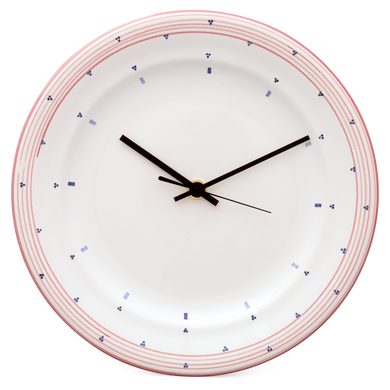 Fayence weiss mit blauen Punkten und rosa Rand Glasur glänzend