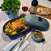 Der Tontopf 482 ist ein echter Designklassiker aus dem Hause Hedwig Bollhagen. Handgefertigt und stilecht überzeugt er durch sein zeitloses, modernes und elegantes Äußeres. Dieser Tontopf ist eine Attraktion auf jedem schön angerichteten Tisch. Ganz gleich, ob Gemüse oder Fleisch zubereitet wird, Brot gebacken oder andere leckere Speisen in diesem praktischen Bräter zum Kochen gebracht werden. Mit dem Bräter aus Keramik gelingt jedes Rezept auf Anhieb. Mit einer Höhe von 14 Zentimeter, 20 Zentimetern in der Breite und 35 Zentimetern Durchmesser ist der Tontopf handlich und vielseitig einsetzbar zugleich. Sei es für den deftigen Sonntagsbraten oder zum fettarmen Dunstgaren von vitaminreichen Gerichten. Der Tontopf kann zum Brotbacken, aber auch als Brottopf zum Aufbewahren von Lebensmitteln verwendet werden. Den Tontopf gibt es in verschiedenen geschmackvollen Ausführungen. Klassisch weiß passt das Modell mit dem Dekor 000 aus der Fayence-Kollektion optisch in jede Küche. Ebenfalls aus der Fayence-Reihe stammt der Tontopf 482 mit dem Dekor 137. Mit seinen klaren Linien und dem blau-weißen Landhausstil steht er repräsentativ für den praktisch-eleganten Stil der Keramiken aus den HB-Werkstätten. Das Dekor 050-1 aus der Kollektion Varius weckt sofort Assoziationen zum legendären Bauhaus. Klar, sachlich und von zeitlosem Stil ist dieser schöne Bräter aus Keramik ein absoluter Blickfang.