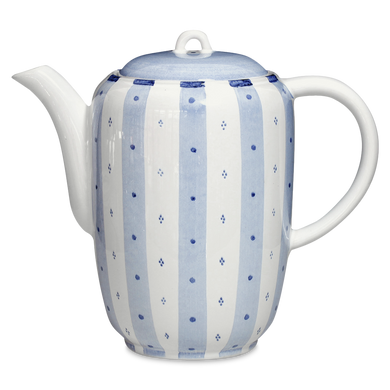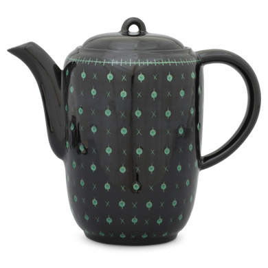 Die Kaffeekanne mit der Formnummer „501“ von Hedwig Bollhagen sorgt ganz sicher für die Extraportion Gemütlichkeit auf der Kaffeetafel. Mit einem Durchmesser von elf Zentimetern, einer Gesamthöhe von 16 Zentimetern und einem Fassungsvermögen von 0,85 Litern ist die 530 Gramm leichte Kaffeekanne nicht zu klein und nicht zu groß. Charakteristisch ist halbrunde, geschweifte Knauf auf dem flachen Deckel. Der zylindrische, oben und unten abgerundete Korpus und die geschweifte Ausgussröhre runden das Design harmonisch ab. Eins ist sicher, ob Muckefuck, Blümchen-Kaffee oder Arabusta, in der Kaffeekanne von Hedwig Bollhagen lassen sich Heißgetränke aller Art stilvoll und formvollendet kredenzen.
