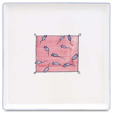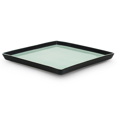 Die Platte von Hedwig Bollhagen mit der Formnummer „553“ ist den Mitarbeitern der Marwitzer Keramik-Manufaktur auch unter dem Namen „Kabarett-Tablett“ geläufig. Charakteristisch ist die quadratische Form. 24 Zentimeter lang und ebenso breit, gehört die ein Kilogramm schwere und zwei Zentimeter hohe Platte zu den ganz großen im Sortiment von Hedwig Bollhagen. Und flexibel in der Nutzung ist sie auch: In einem fünfteiligen Set lässt sich das quadratische Tablett nämlich mit vier kleineren, quadratischen Schalen kombinieren. Diese Servier-Platte ist nicht nur eine Allzweckwaffe, die sich im Alltag flexibel einsetzen lässt, sondern zieht auch sonst alle Blicke auf sich.