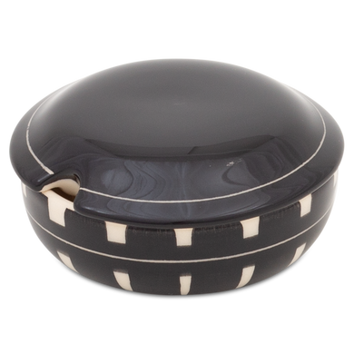 Die Dose von Hedwig Bollhagen mit der Formnummer „521“ begeistert durch eine klassische nostalgische Formgestaltung mit raffinierten Details. Das handgearbeitete Kleinod, bestehend aus Schale und Deckel, zieht mit seinem Vintage-Design nicht nur alle Blicke auf sich, sondern weist auch vielseitige praktische Vorzüge auf. So lässt sich das 4 Zentimeter hohe und 6,5 Zentimeter breite Keramikdöschen ideal als ansprechender Aufbewahrungsort für Gewürze, Salz und Zucker oder auch Accessoires und Schmuck verwenden. Eine kleine, halbrunde Öffnung am Rand des Deckels schafft nützlichen Platz für einen Löffel. Die rundlich fließende Formgestaltung verleiht dem nur 80 Gramm leichten Keramikdöschen einen einzigartigen harmonischen Charme.
