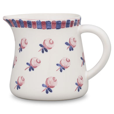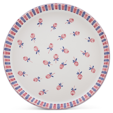 Fayence weiß-rot blaue Rosen und rot blauer Rand Glasur glänzend