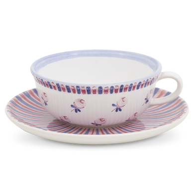 Die HB Fayencen entstehen durch Inglasurmalerei. Nach dem ersten Brand wird eine weissdeckende Glasur auf die Keramiken aufgebracht. Nach der Trocknung malen unsere zum Teil noch von Hedwig Bollhagen ausgebildeten Kerammalerinnen deren berühmte farbige Fayencedekore von Hand in die Glasur. Im sogenannten Glattbrand vereint sich die Glasur mit dem mit Engobe gemalten Dekor und fixierte es. Die keramisch "sicheren" Farben bilden mit blau, gelb und schwarz die Klassiker. Rot gilt als „flüchtige Farbe“ und verblasst nicht selten im Glattbrand. Alle Farben gehören zu den typischen Fayence-Dekoren Hedwig Bollhagens, die als ein Hommage an die von ihr so verehrte Bauerntöpferei zu verstehen sind.