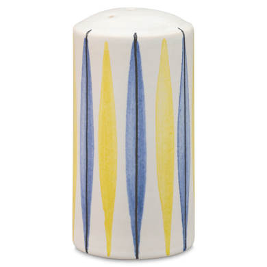 Der Pfefferstreuer mit der Formnummer “523P” von Hedwig Bollhagen bringt nicht nur die richtige Geschmacksintensität ans Essen, sondern überzeugt auch durch seine zeitlose, funktionale Form. Charakteristisch sind der einfache, zylinderförmige Korpus und der etwas konvexe, dreimal gelöcherte Kopf. Am Fuß befindet sich die nicht sichtbare Öffnung zum Befüllen des Pfefferstreuers. Bei einer Höhe von achteinhalb Zentimetern und einer Breite von viereinhalb Zentimetern ist der Pfefferstreuer nicht nur halb so breit wie hoch, sondern gehört auch eher zu den Leichtgewichten in der keramischen Kollektion von Hedwig Bollhagen. Zwar klein, aber nicht minder fein, gehört dieser Pfefferstreuer wie sein Bruder der Salzstreuer 523 zu jeder Mahlzeit dazu.