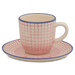Die zweiteilige Cappuccinotasse von Hedwig Bollhagen mit der Formnummer „573“ besteht aus Tasse und Untertasse. Die dickwandige Keramiktasse isoliert das darin befindliche Heißgetränk perfekt, so dass es länger warm bleibt. Mit einem Fassungsvermögen von 0,2 Litern gehört die 320 Gramm leichte Cappuccinotasse schon zu den größeren ihrer Sorte. Nach oben ist das achteinhalb Zentimeter hohe Gefäß leicht geöffnet und lässt dem Milchschaum ausreichend Platz. Nach unten findet die Tasse in der kreisrunden Öffnung der Untertasse (Durchmesser etwa 15 Zentimeter) einen sicheren Halt. So viel steht fest, ob Cappuccino, Mokkacino oder Cafe au Lait, in der Cappuccinotasse von Hedwig Bollhagen lassen sich Heißgetränke aller Art stilvoll kredenzen.