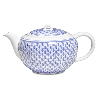 Fayence weiß Bienchenmuster blau Glasur glänzend