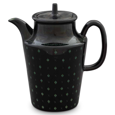Die Kaffeekanne mit der Formnummer „588B“ von Hedwig Bollhagen veredelt jede Kaffeetafel durch ein moderne Formsprache mit nostalgischen Einflüssen. Der insgesamt 19,5 Zentimeter hohe, konisch wachsende Korpus verjüngt sich nach oben hin zu einem konvex geschwungenen Hals mit flachem Deckelrand. Typisch für die 13 Zentimeter breite Kaffeekanne 588B mit flachem Deckel sind der hochgezogene Schnabelausguss und ein großer ohrenförmiger Henkel, der einen charismatischen Kontrast zu den geradlinigen Formelementen darstellt. Egal ob Kaffee, Kakao, Tee oder ein anderes Lieblingsgetränk – mit einem Fassungsvermögen von einem Liter erweist sich die 670 Gramm leichte Kanne als vielseitiger Allrounder, der jederzeit entspannte Genussmomente garantiert.