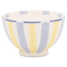 Fayence weiß gelb blaue Streifen Glasur glänzend