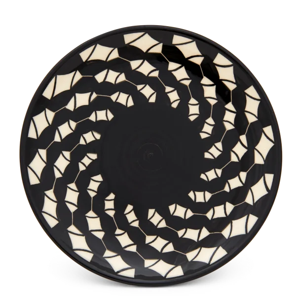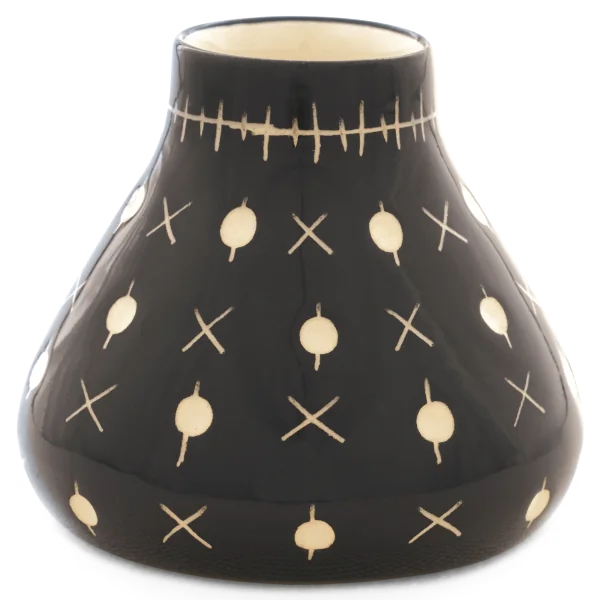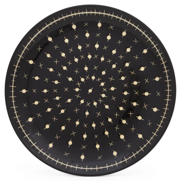 Ritz Glasur schwarz glänzend mit Punkten und Kreuzen in Elfenbein