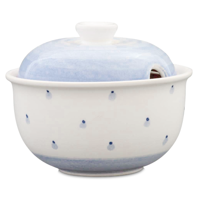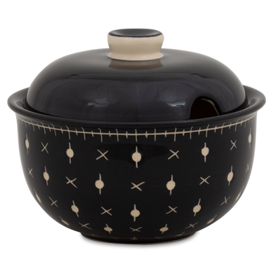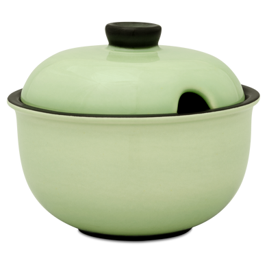 Die Marmeladendose von Hedwig Bollhagen mit der Formnummer „542“ präsentiert Großmutters Chutney beim Brunch zeitlos und stilsicher. Das zweiteilige Set aus Gefäß und Deckel ist bei einem Durchmesser von zehn Zentimetern und einer Höhe von sieben Zentimetern fast so hoch wie breit. Und mit einem Fassungsvermögen von 0,2 Litern ist die 250 Gramm leichte Marmeladendose weder zu klein noch zu groß. Charakteristisch ist der bauchig-kugelförmige Korpus vom Gefäß. Ein rundlich konvexer Deckel mit einem kegelförmigen Griff verschließt die nach oben geöffnete Dose. Dank der etwa einen Zentimeter kleinen, halbrunden Öffnung am Deckelrand hat auch der Marmeladenlöffel sein sicheres Plätzchen.