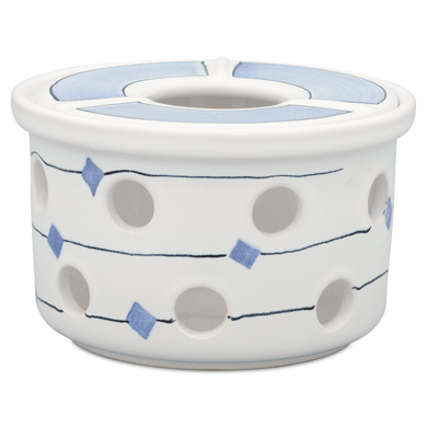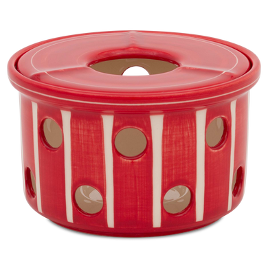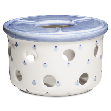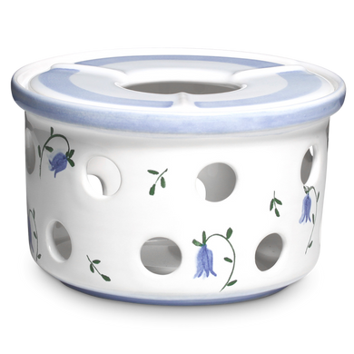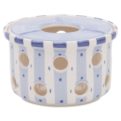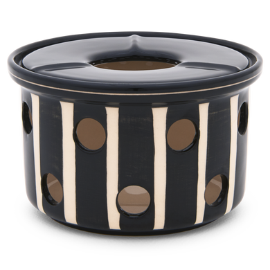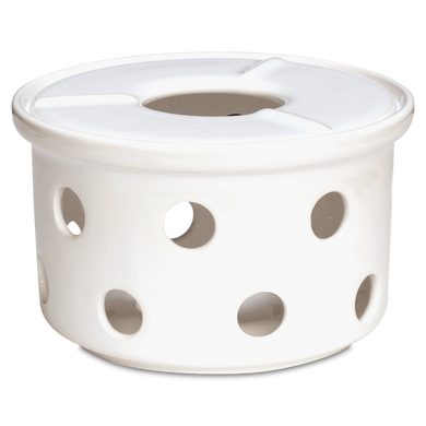 Das zweiteilige Stövchen von Hedwig Bollhagen mit der Formnummer „535“ verströmt ein behagliches Wohlfühl-Ambiente. Charakteristisch sind die geradlinige, zylindrische Form des Korpus und der oben aufliegende, flache Untersetzer mit der runden Teelicht-Öffnung in der Mitte. Und Dank der zahlreichen, etwa einen Zentimeter kleinen Luftlöcher geht bei der dezenten Beleuchtung ganz sicher mehr als ein Licht auf. Die 350 Gramm leichte und siebeneinhalb Zentimeter niedrige Feuerstelle ist mit einem Durchmesser von zwölf Zentimetern mehr breit als hoch. Ob die Terrine mit der klaren Brühe, der Guten-Morgen-Kaffee auf dem Frühstückstisch oder die Teekanne auf dem Schreibtisch, mit den keramischen Stövchen von Hedwig Bollhagen gehören die kalten Suppen und Heißgetränke endlich der Vergangenheit an.