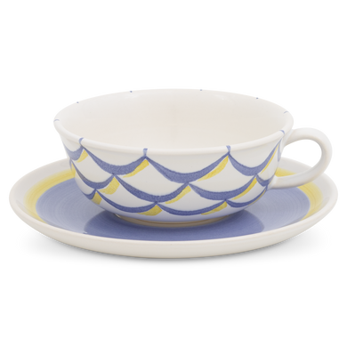 Fayence weiß blau/gelbe Fischschuppen im Kreis Glasur glänzend