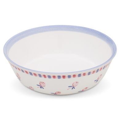 Fayence weiß-rot blaue Rosen und rot blauer Rand Glasur glänzend