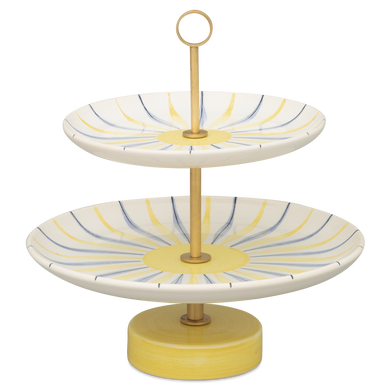 Die zweistöckige Etagere mit der Formnummer “611B” von Hedwig Bollhagen ist die kleine Schwester der dreistöckigen Version 611C und der vierstöckigen 611D und bringt klassischen Charme und Eleganz auf den Tisch. Formgebend für die Etageren ist das offene Gestell mit mehreren, nach unten zunehmend breiter werdenden tellerförmigen Ebenen. Der durchgehende, alle Etagen verbindende Messingstab mit dem kreisrunden Griff an der Spitze verleiht dem Design eine edle Note und sorgt für Stabilität. Mit einer Höhe von 24 cm und einem Durchmesser von 23 cm bietet der seit dem Barock so beliebte Gestell zwei Ebenen, die perfekt für das stilvolle Anrichten von Früchten, Gebäck oder kleinen Pralinen geeignet sind. Auf den mehrstöckigen Etageren von Hedwig Bollhagen lassen sich Obst und kleine Köstlichkeiten jeder Art stilvoll kredenzen. Runden Sie Ihre Tafel mit weiteren Tischaccessoires, Geschirr und Serviergeschirr ab und zaubern Sie auch Ihren Kindern mit dem liebevoll bemalten Kindergeschirr ein Lächeln ins Gesicht. Jedes Stück wird in den HB-Werkstätten für Keramik in Marwitz handgefertigt und vereint zeitlose Ästhetik mit traditionellem Handwerk seit 1934.