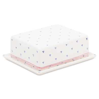 Die Butterdose mit der Formnummer “497B” von Hedwig Bollhagen ist die große Schwester der kleineren 497A. wie die kleine Schwester wurde sie von dem Bauhaus Keramiker Werner Burri entworfen. Charakteristisch sind der flache, rechteckige, an den Rändern leicht erhabene Teller und der ebenso rechteckige, schalenförmige Deckel. Bei einer Höhe von sechs Zentimetern und einer Breite von zwölf Zentimetern ist die Butterdose doppelt so breit wie hoch. Die im Bauhaus proklamierte Regel „Form follows Funktion“. Natürlich können Sie sich auch Leberwurst, Käse oder was immer Ihnen Spaß macht in der 497A aufbewahren, aber sicher ist, dass dieser Klassiker auf keinem Designliebhaber Frühstückstisch fehlen darf.