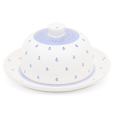 Die Käsedose von Hedwig Bollhagen mit der Formnummer „494B“ ist die große Schwester der etwas kleineren Käsedose mit der Formnummer 494A. Das zweiteilige Set aus Teller und Deckel ist bei einem Durchmesser von 17 Zentimetern und einer Höhe von zehn Zentimetern zwar nur halb so hoch wie breit. Dafür lassen sich Camembert, Feta und Co. unter der keramischen Haube nicht nur hygienisch, sondern vor allem auch formvollendet aufbewahren. Schon Großmutter könnte ihre käsigen Köstlichkeiten unter der Glocke der 680 Gramm schweren Käsedose vor den Mäusen geschützt haben. Eins ist sicher, diese etwas nostalgische Käsedose versprüht ganz viel Retro-Charme.