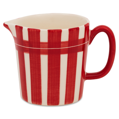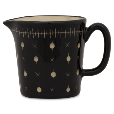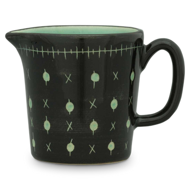 Der Sahnegießer von Hedwig Bollhagen mit der Formnummer „588“ bezaubert durch eine klassisch-schlichte Formgebung mit selbstbewusster Konturenzeichnung. Das traditionell von Hand gemachte Serviergefäß weist einen zylindrisch wachsenden Korpus mit fließendem Übergang zur leicht ausgestellten, tropfsicheren Mündung auf. Der rundliche, ohnrenförmige Henkel passt sich stimmig in das harmonisch angelegte Designkonzept des Sahnegießers ein. Bei einem Durchmesser von acht Zentimetern ist das sechs Zentimeter hohe Gefäß beinahe so hoch wie breit. Damit weist der Gießer 588 genau die richtigen Maße auf, um Saucen, Milch, Sahne und Co. ansprechend zu servieren, ohne viel Platz auf dem Tischgedeck einzunehmen.