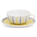 Die Teetasse von Hedwig Bollhagen mit der Formnummer „501“ entzückt durch ihr klassisch-nostalgisches Design und eine traditionsverbundene Gestaltung. Mit einem Durchmesser von elf Zentimetern ist die fünf Zentimeter niedrige Tasse beinahe doppelt so breit wie hoch – Idealmaße für eine entspannte Tasse Tee mit vollmundiger Aromaentfaltung. Typisch für die 170 ml fassende Teetasse 501 aus handgemachter Keramik ist eine filigran fließende Konturgebung. Der halbrunde Henkel sowie der leicht nach außen gewölbte Rand (“Trinklippe”), der für Tropfsicherheit beim Trinken sorgt, sind weitere unikate Markenzeichen. Und falls dennoch mal beim Servieren ein Malheur passieren sollte, fängt die nach oben zart gebogene Untertasse mit Sicherheit alles auf.