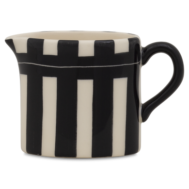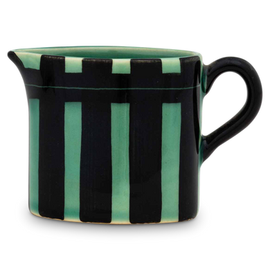 Der Sahnegießer von Hedwig Bollhagen mit der Formnummer „484“ könnte fast die kleine Schwester des Kanadabecher sein – mal abgesehen von der Schneppe. Charakteristisch ist die gerade, nach oben zylindrische verlaufende Form des Korpus. Der anmontierte Ohrenhenkel und die diametral gegenüberliegende, nach außen aufgestellte, tropfsichere Tülle fügen sich harmonisch in das Design dieses Milchkännchens ein. Bei einem Durchmesser von vier Zentimetern ist das sechs Zentimeter hohe Gefäß eher höher als breiter. Und mit einem Fassungsvermögen von gerade einmal 0,1 Litern gehört der 100 Gramm leichte Sahnegießer zwar zu den kleinen, aber nicht minder feinen im keramischen Sortiment von Hedwig Bollhagen.