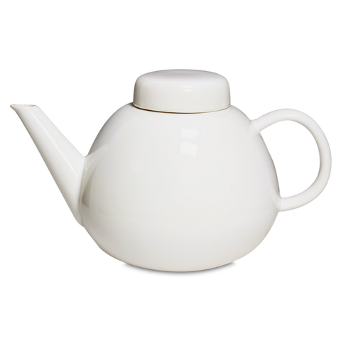 Die Teekanne mit der Formnummer „557“ ist die kugelförmige Schwester der eher kantigen 571 und 563. Charakteristisch für alle drei Teekannen ist der Siebeinsatz aus Keramik. Mit ihren Maßen – 15 Zentimeter breit und 14 Zentimeter hoch – und ihrem Fassungsvermögen von einem Liter ist die 557 weder zu groß noch zu klein. Formgebend sind der runde, etwas eiförmige Korpus und der aufgestellte, runde, flache Deckel ohne Griff. Der seitliche Henkel und der gegenüberliegende, gerade aufgestellte Röhrenausguss mit der tropfsicheren Schneppe ergänzen die einfache, schlichte, aber zugleich funktionale Form. Denn diese entspricht bei gleichzeitig höchster Kunstfertigkeit dem Duktus von Hedwig Bollhagen: Schön ist, was funktioniert.
