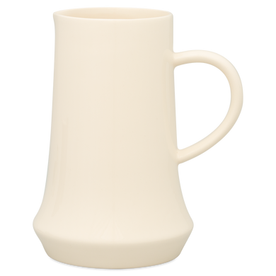Der Krug von Hedwig Bollhagen mit der Formnummer „485" besticht durch ein uriges Design in zeitloser Komposition. Charakteristisch ist der zylindrische Korpus mit bauchigem Grund sowie der große, oval geschwungene Henkel. Der traditionell handgemachte Saftkrug gehört mit 21 Zentimetern Höhe und 13,5 Zentimetern Breite zu den größeren Keramikkrügen des HB Sortiments. Der 640 Gramm leichte Krug ist ein ästhetischer Allrounder, der nicht nur als Saftkrug eine gute Figur macht – dank eines großzügigen Fassungsvermögens von 1,2 Litern kann der elegante Krug für diverse Anlässe eingesetzt werden. Außerdem lässt sich der schlichte wie gleichsam auffällig schöne Keramikkrug hervorragend mit diversen Geschirrserien kombinieren.