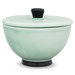Die Dose von Hedwig Bollhagen mit der Formnummer „549A“ ist das ideale Versteck für die kleinen Schätze des Alltags. Charakteristisch sind der konische Fuß, der bauchig-kugelförmige Korpus und der flache, runde Deckel mit dem anmontierten, kegelförmigen Knauf. Bei einem Durchmesser von neun Zentimetern und einer Höhe von sieben Zentimeter ist die Dose fast so breit wie hoch. Und mit einem Fassungsvermögen von 0,1 Litern gehört die 190 Gramm leichte Dose wohl eher zu den kleinen, aber nicht minder feinen Dosen im Sortiment. Eins ist sicher, ob auf dem Küchenbuffet, der Kommode oder Nachtschrank, diese keramische Schatulle inspiriert Dosenromantiker zum Dekorieren.