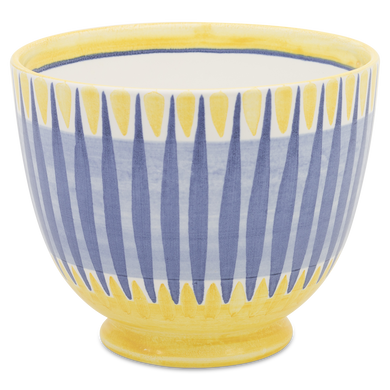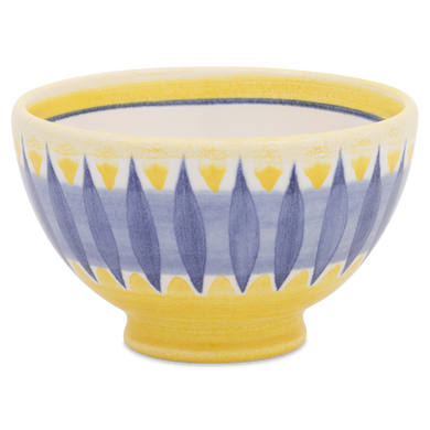 Die Schale von Hedwig Bollhagen mit der Formnummer „549B“ ist die kleine Schwester der etwa doppelt so großen Schale mit der Formnummer 549C. Charakteristisch ist der kugelförmig-gebauchte, nach oben außen fließende Korpus. Das Gefäß, das die Mitarbeiter der Marwitzer Keramik-Manufaktur auch als „Kumpen“ bezeichnen, steht auf einem etwa halben Zentimeter hohen, zylinderförmigen Fuß. Bei einem Durchmesser von zwölf Zentimetern ist die sieben Zentimeter hohe Schale mehr breit als hoch. Und bei einem Fassungsvermögen von einem Viertelliter gehört der 220 Gramm leichte Kumpen eher zu den kleinen Schalen im Sortiment von Hedwig Bollhagen. So viel steht fest: Ob Müsli, Suppe oder Kompott, diese Schale ist in der Nutzung flexibel.