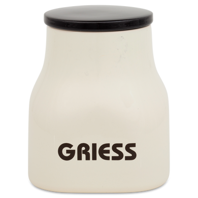 Die Vorratsdose „Grieß“ HB 595 ist mehr als nur eine Aufbewahrungslösung – sie bringt ein Stück Tradition und Geborgenheit in Ihre Küche. Mit einem Volumen von 1,0 Litern bietet sie ausreichend Platz, um Grieß trocken und frisch zu halten. Der cremefarbene Korpus mit der klaren Aufschrift „GRIESS“ und der schwarze, dicht schließende Deckel schützen den Inhalt vor Feuchtigkeit und sorgen dafür, dass das Aroma erhalten bleibt. Das schlichte Design im Bauhausstil fügt sich harmonisch in jede Küche ein. Diese Dose ist nicht nur für Grieß ein Muss, sondern auch für andere Vorräte wie Tee, Reis, Nudeln oder Haferflocken. Für kleinere Mengen und Gewürze wie Zimt, Pfeffer oder Thymian gibt es die kompakte Variante HB 556, welche jeweils mit dem entsprechenden Inhalt mit schwarzen Druckbuchstaben beschriftet ist. Beide Dosen vereinen Funktionalität und handgefertigte Qualität, für die Hedwig Bollhagen seit 1934 bekannt sind.