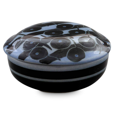 Das handgemachte Döschen von Hedwig Bollhagen mit der Formnummer „865“ entzückt durch ein klassisches schlichtes Design, das sich hervorragend mit weiterem Geschirr kombinieren lässt, aber auch alleinstehend stilvolle Akzente setzt. Typisch für das zweiteilige Set, bestehend aus Schale mit Deckel, ist die bauchig gehaltene, geradlinig hochwachsende Kontur. Der leicht gewölbte Deckel akzentuiert den harmonischen Formcharakter des Manufakturerzeugnisses. Die vier Zentimeter hohe und sechs Zentimeter breite Dose aus Keramik empfiehlt sich nicht nur als Schmuckdöschen, sondern bewahrt auch Naschereien und diverse andere Dinge stilsicher auf. Damit überzeugt das 100 Gramm leichte Döschen 865 sowohl nach ästhetischen als auch nach funktionalen Gesichtspunkten.