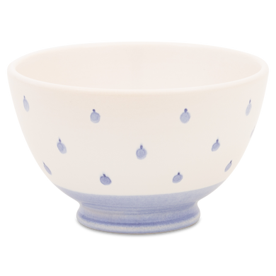 Fayence weiß hell-und dunkelblaue Punkte Glasur glänzend