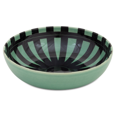 Die Schale von Hedwig Bollhagen mit der Formnummer „503C“ Einst als Kinderschale hergestellt, lässt Sie den Nachwuchs ganz sicher groß und stark werden. Charakteristisch ist die runde Schalenform. Tiefer als ein Teller, flacher als eine Schüssel, ist die fünf Zentimeter hohe Schale bei einem Durchmesser von 18 Zentimetern mehr als dreimal so breit wie hoch. Bei einem Fassungsvermögen von 0,3 Litern ist die 350 Gramm leichte Suppenschale weder zu klein noch zu groß. Ob Spinat, Grießbrei oder gekochter Kürbis, aus der keramischen Kinderschale mit den lustigen Motiven löffeln auch kleine Suppenkasper ihr Essen ratzekahl leer. Schließlich darf wenigstens der Teller so aussehen, als würde es immer nur Gummibärchen, Schokolade und Bonbons regnen.