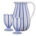 Fayence weiß - blaue und hellblaue Streifen - Glasur glänzend