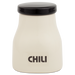 Die Gewürzdose „Chili“ HB 556 ist ideal, um scharfes Chilipulver, Chiliflocken oder Chilisamen frisch und aromatisch aufzubewahren. Mit einer kompakten Größe von 8,5 cm und einem Volumen von 0,13 Litern schützt sie das Gewürz dank des schwarzen, dicht schließenden Deckels zuverlässig vor Feuchtigkeit. Der cremefarbene Korpus mit der schwarzen Aufschrift „CHILI“ bringt stilvolle Ordnung und in Ihre Küche. Die klare, schlichte Formgebung dieser Dose ist vom Bauhausstil inspiriert und bringt zeitlose Eleganz in jedes Zuhause. Diese handliche Dose ist auch für viele andere Gewürze wie Curcuma, Thymian, Cayenne oder Salbei erhältlich. Für größere Vorräte wie Haferflocken, Kekse, Tee oder Griessi bietet sich die größere Variante HB 595 an. Beide Dosen kombinieren Funktionalität und Design und stehen für die hochwertige Handwerkskunst der Hedwig Bollhagen Werkstätten seit 1934.