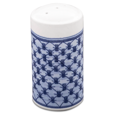 Fayence weiß Bienchenmuster blau Glasur glänzend