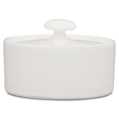 Die Zuckerdose von Hedwig Bollhagen mit der Formnummer „558“ besticht durch ihre zeitlose, zugleich aber funktionale Form. Damit folgt das zweiteilige Set aus Behälter und Deckel dem Credo von Hedwig Bollhagen: Schön ist, was funktioniert. Charakteristisch sind der geradlinig verlaufende, zylinderförmige Korpus und der pilzförmige, anmontierte Knauf auf dem flachen Deckel. Auf Griffe am Kandis-Behälter hat die Künstlerin verzichtet. Bei einem Durchmesser von acht Zentimetern ist das sechs Zentimeter niedrige Gefäß fast so hoch wie breit. Mit einem Fassungsvermögen von 0,2 Litern gehört die Zuckerdose dabei allerdings zu den etwas kleineren im Sortiment von Hedwig Bollhagen.