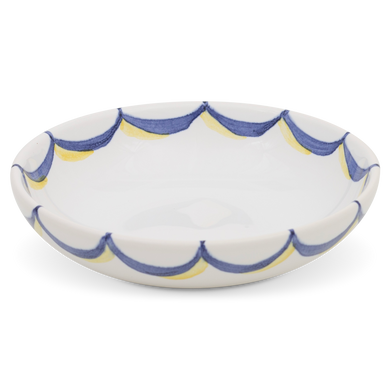 Fayence weiß blau/gelbe Fischschuppen im Kreis Glasur glänzend