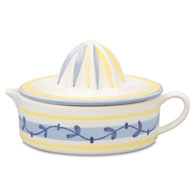 Beim Anblick der originellen Saftpressen von Hedwig Bollhagen fühlt man sich sofort in eine andere Zeit versetzt. Dieses klassische Küchenaccessoire ist selten geworden heutzutage. Dabei geht doch nichts über einen frischgepressten Saft! Unsere Keramik-Saftpressen erhalten Sie in zwei Größen mit einem Fassungsvermögen von 0,2 oder 0,4 Liter. Wir haben sie Pampelmusen- und Zitronenpresse genannt, sie eignen sich aber für viele Obst- und Fruchtsorten. In unseren Kollektionen Fayence, varius und Purum finden Sie Saftpressen in schlichten weißen oder farbigen Dekoren. Das nostalgische und gleichzeitig moderne Design macht die Saftpressen zu zeitlosen Klassikern. Seit 1934 fertigen wir auf traditionelle Art und Weise hochwertige Keramiken in unseren Werkstätten in Marwitz. Dort werden auch unsere Saftpressen von ausgewiesenen Keramikfachleuten in Handarbeit herstellt. Sie sind nicht nur praktisch, sondern zudem äußerst dekorativ. Holen Sie sich eines dieser Kleinode echter Handwerkskunst in Ihre Küche. Die Saftpressen können Sie auch sehr schön mit anderen Produkten aus dem Sortiment Geschirr oder Küchenhelfer kombinieren. Sie interessieren sich für die Keramikherstellung? Dann laden wir Sie recht herzlich zu einer Werksführung in die traditionsreichen Keramik-Werkstätten nach Marwitz ein. mehr lesen