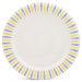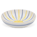 Fayence weiß gelbe Bänder und blaue Striche Glasur glänzend